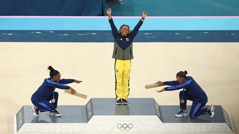 Simone & Jordan celebrating Brazil’s Rebeca Andrade